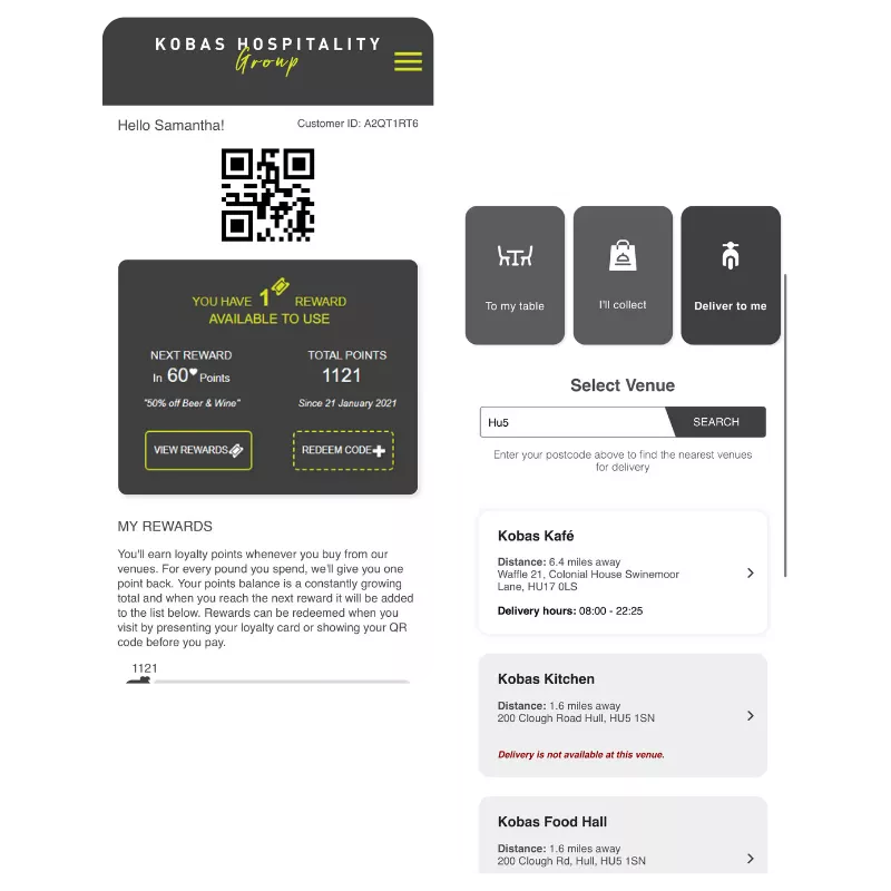 The Kobas Customer App acts as a single touchpoint across your entire group, rather than a collection of disconnected, venue-specific tools. By sharing the same platform across all locations, it creates a streamlined experience for your guests while enabling the group to operate more efficiently.